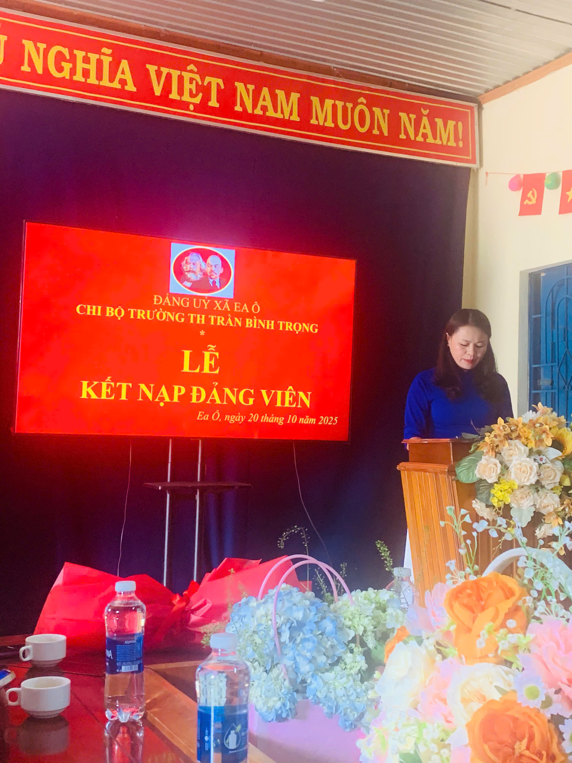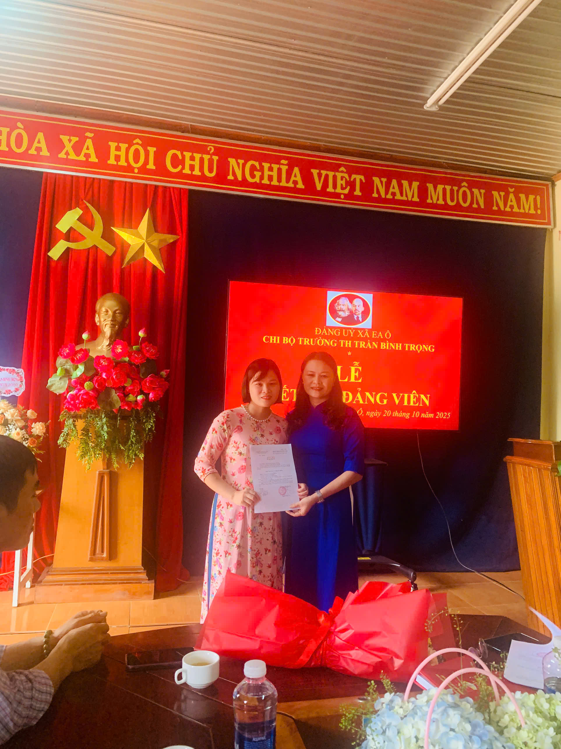 Ngày 20/10/2025, Chi bộ Trường Tiểu học Trần Bình Trọng đã long trọng tổ chức Lễ kết nạp Đảng cho quần chúng ưu tú Lý Thị Hà, sinh ngày 01/11/1992. Buổi lễ diễn ra trong không khí trang nghiêm, đúng trình tự, thủ tục theo Điều lệ Đảng, thể hiện sự quan tâm của chi bộ đối với công tác phát triển đảng viên.