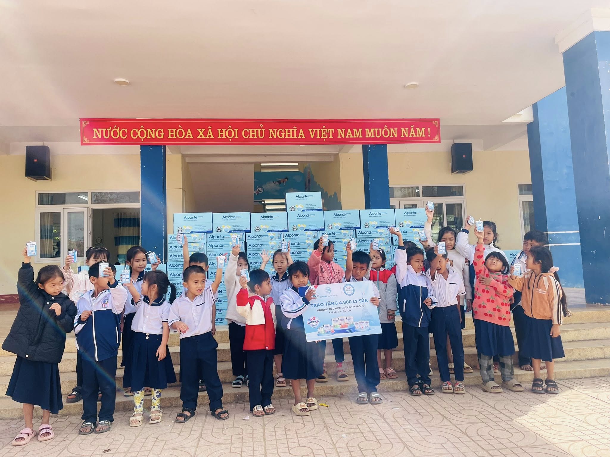 Ngày 07/1/2025 liên đội nhận 100 thùng sữa từ quý công ty & Cửa hàng sữa Đăng Quang xã Eakar